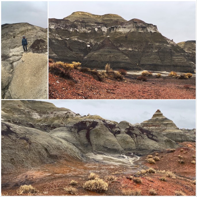 From Mesa Verde National Park we traveled south into New Mexico spending our first night in Farmington (fika @ Studio Bake Shoppe). From Farmington we journeyed due south on NM371 through the Navajo Nation to access the Bisti Badlands. As wilderness areas by defintion allow no motorized traffic the only access from the parking area is by foot. There are no trails or markers of any sort. So bring your compass and utilize your gps. Line of sight navigation is impossible as once you enter into the outcroppings you are in a maze of strange sandstone, shale, coal, mudstone and silt formations. There are a plethora of hoodoos and just strange looking features that evolve based on the ongoing wind and water erosion that takes place with these soft materials.