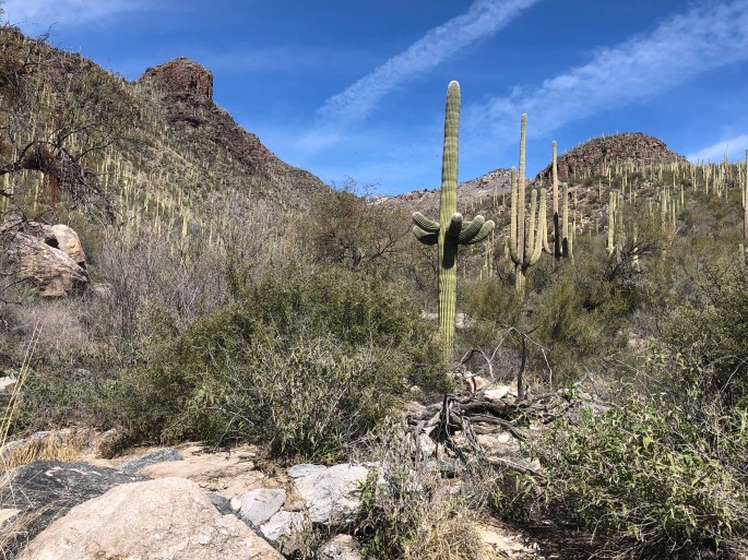 Politics aside, we were fortunate to travel through the reservation at a time when the Sonoran Desert is in full bloom. Purple, yellow and orange flowers lined the highway against a backdrop of cacti and mountains making for breathtaking scenery.